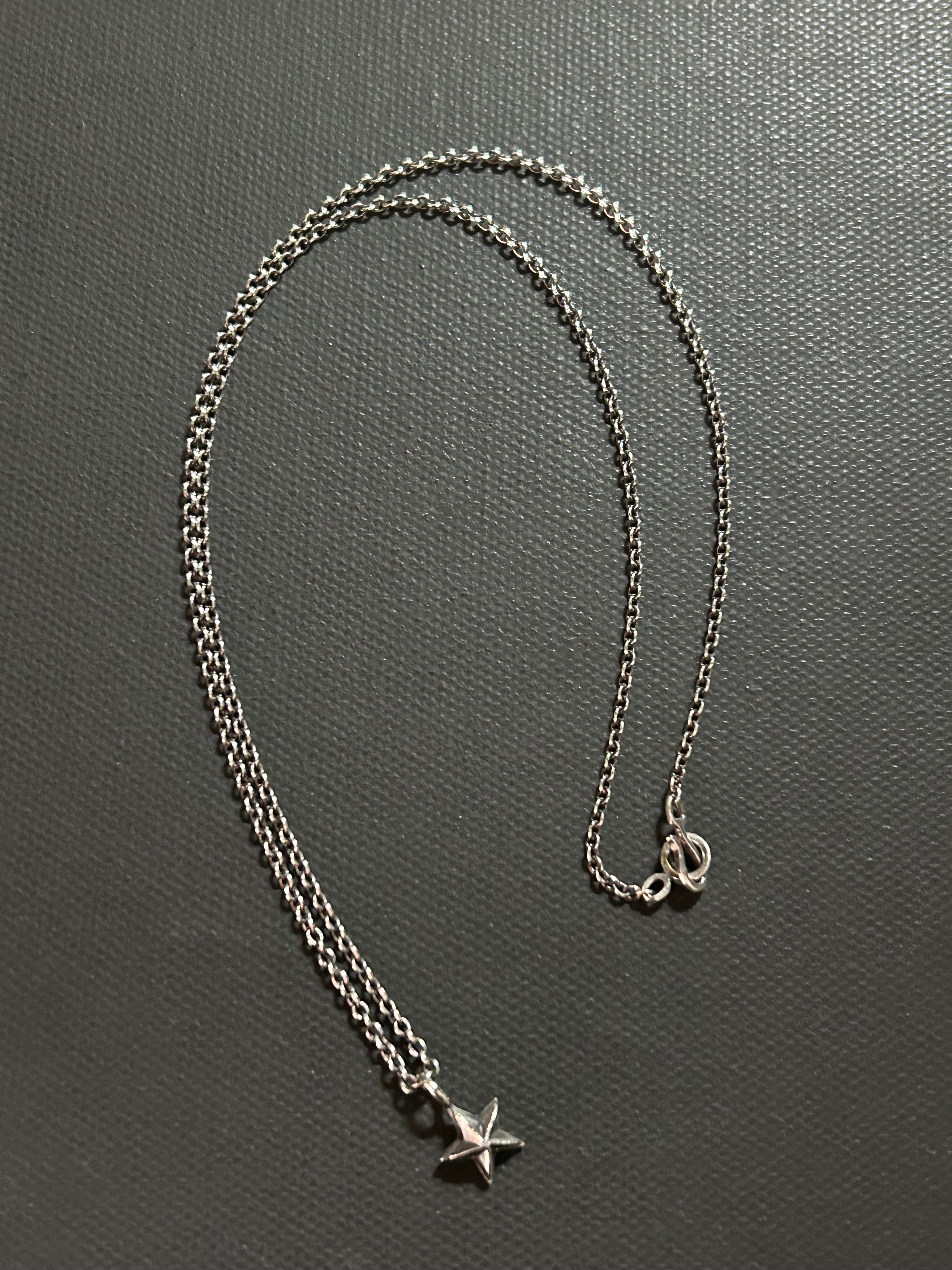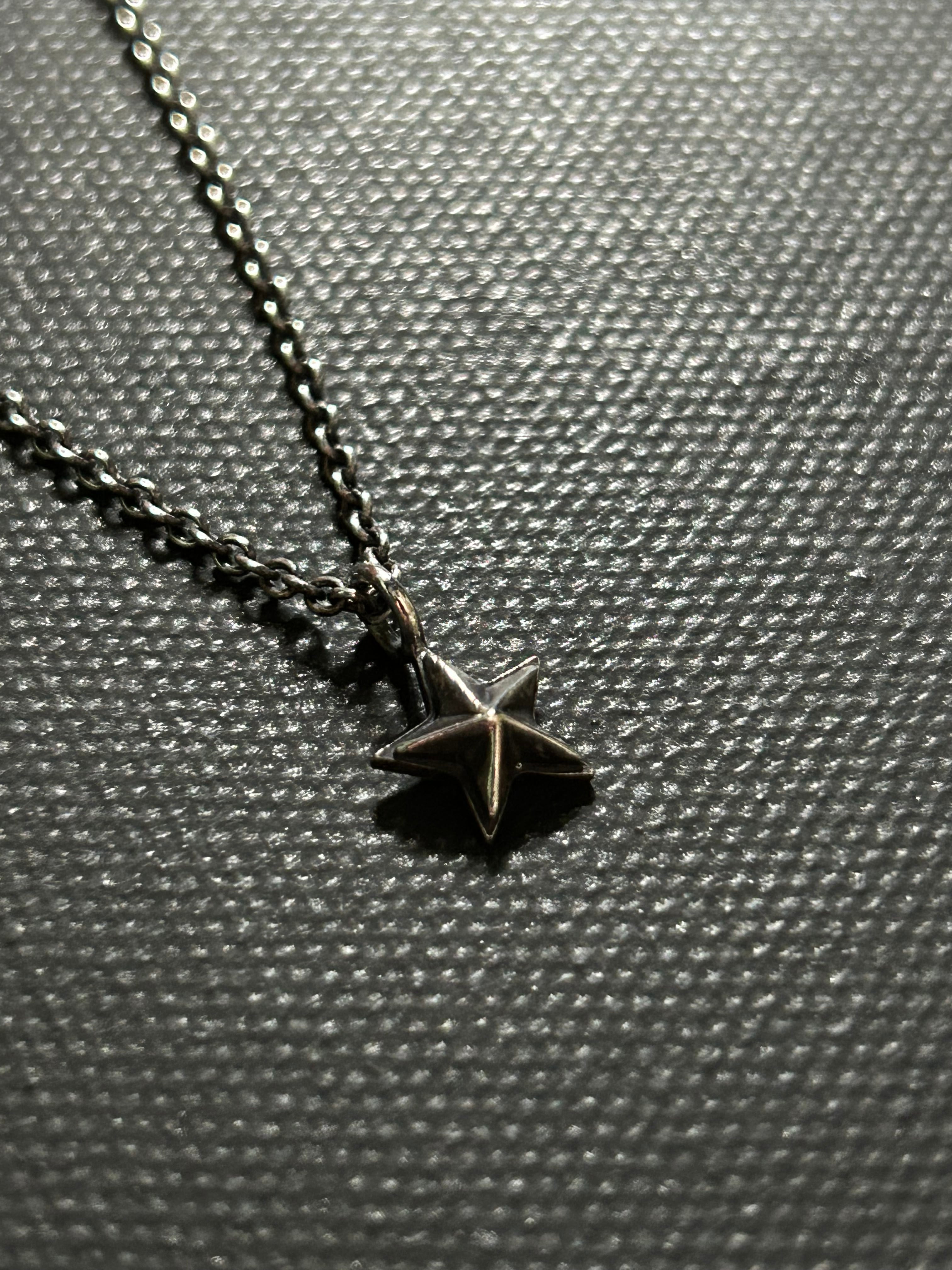 小ぶりのstarをモチーフとしたペンダントトップに、細身の小豆チェーンをセットし、ビンテージライクな仕上げを施したデザインのネックレスです