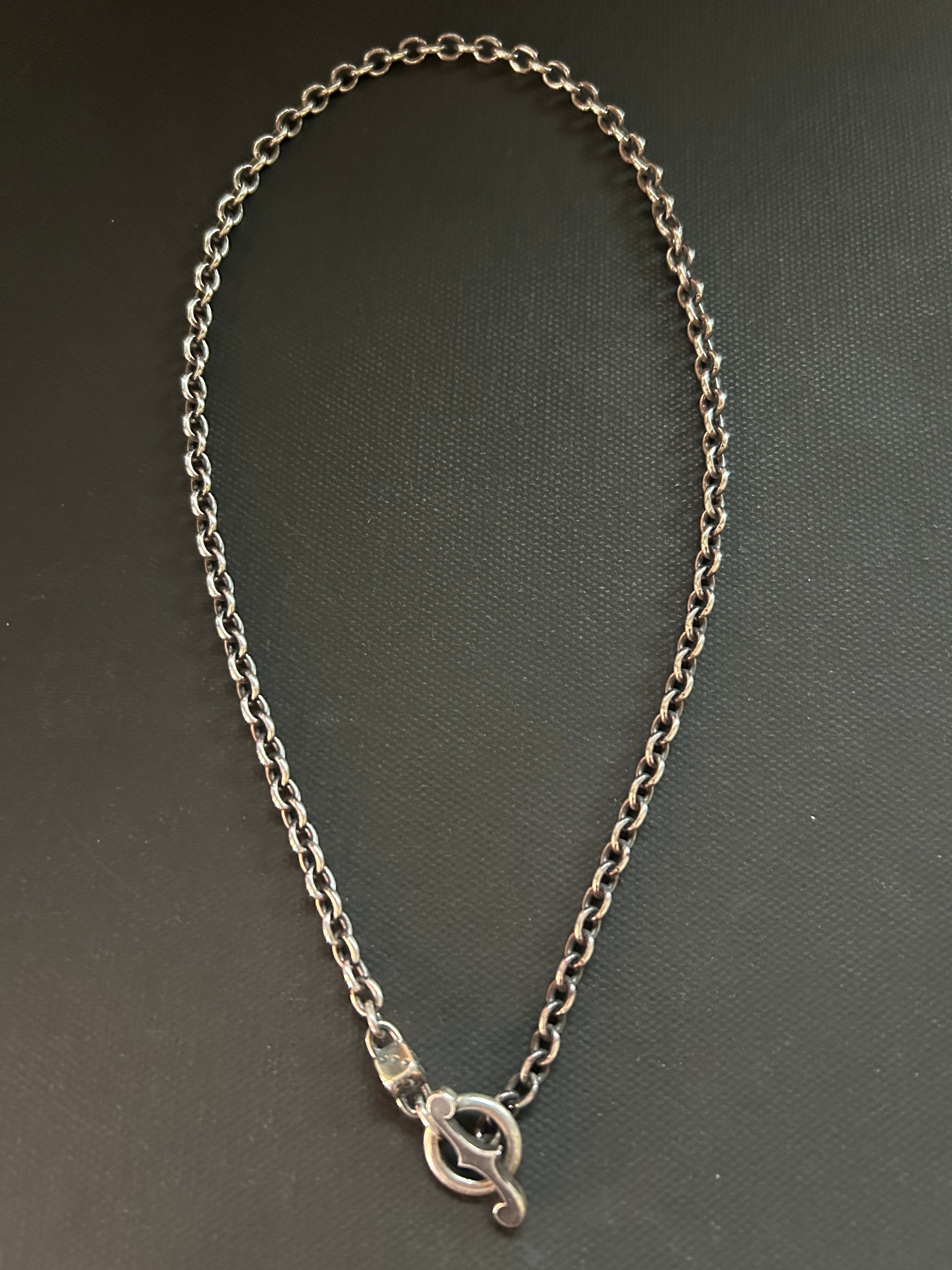 Tバータイプのチェーンです。少し大きめの丸小豆チェーンにFholeデザインの Tバーに、チェーンの逆エンドにDiceをワンポイントでセット。