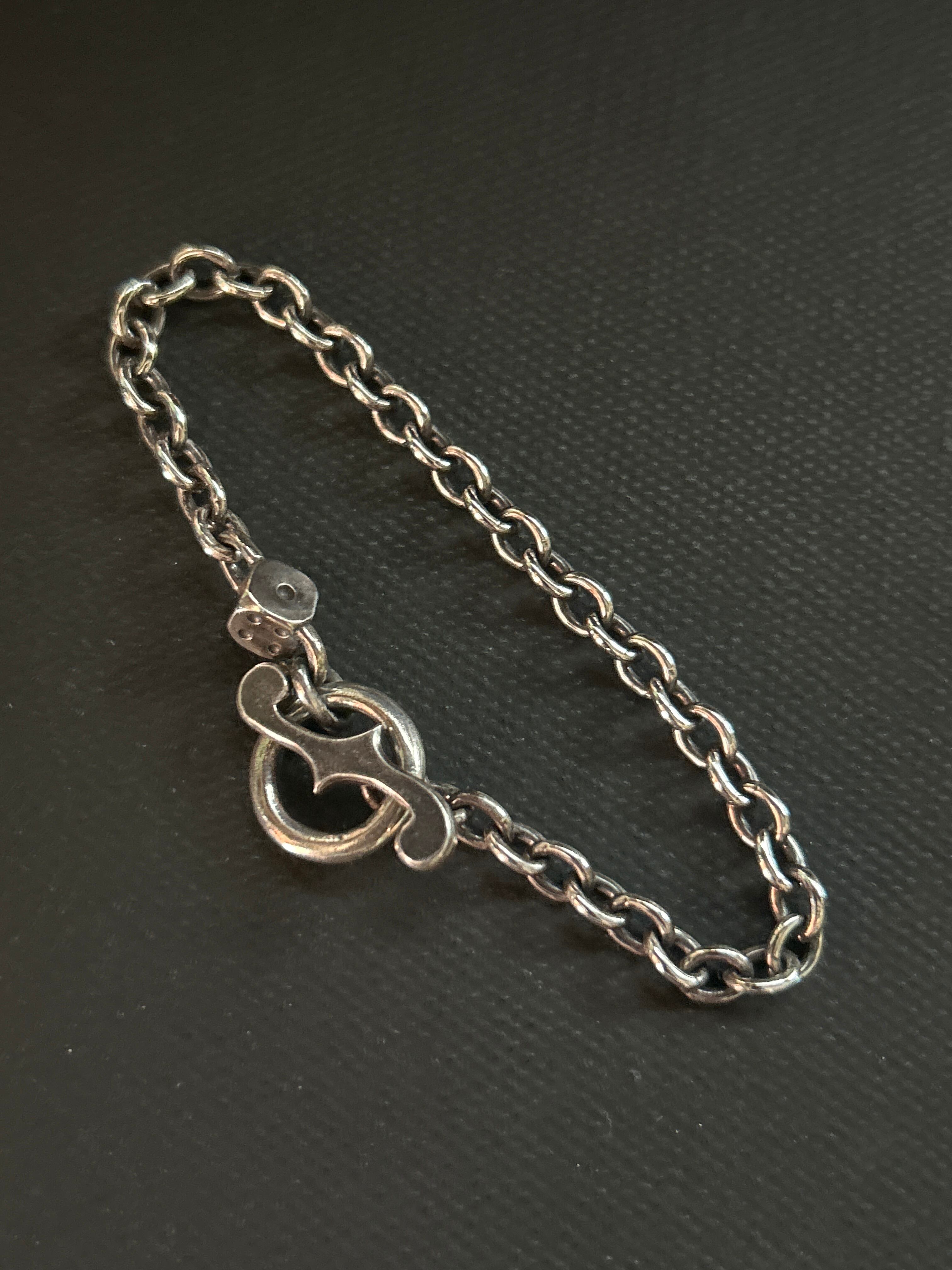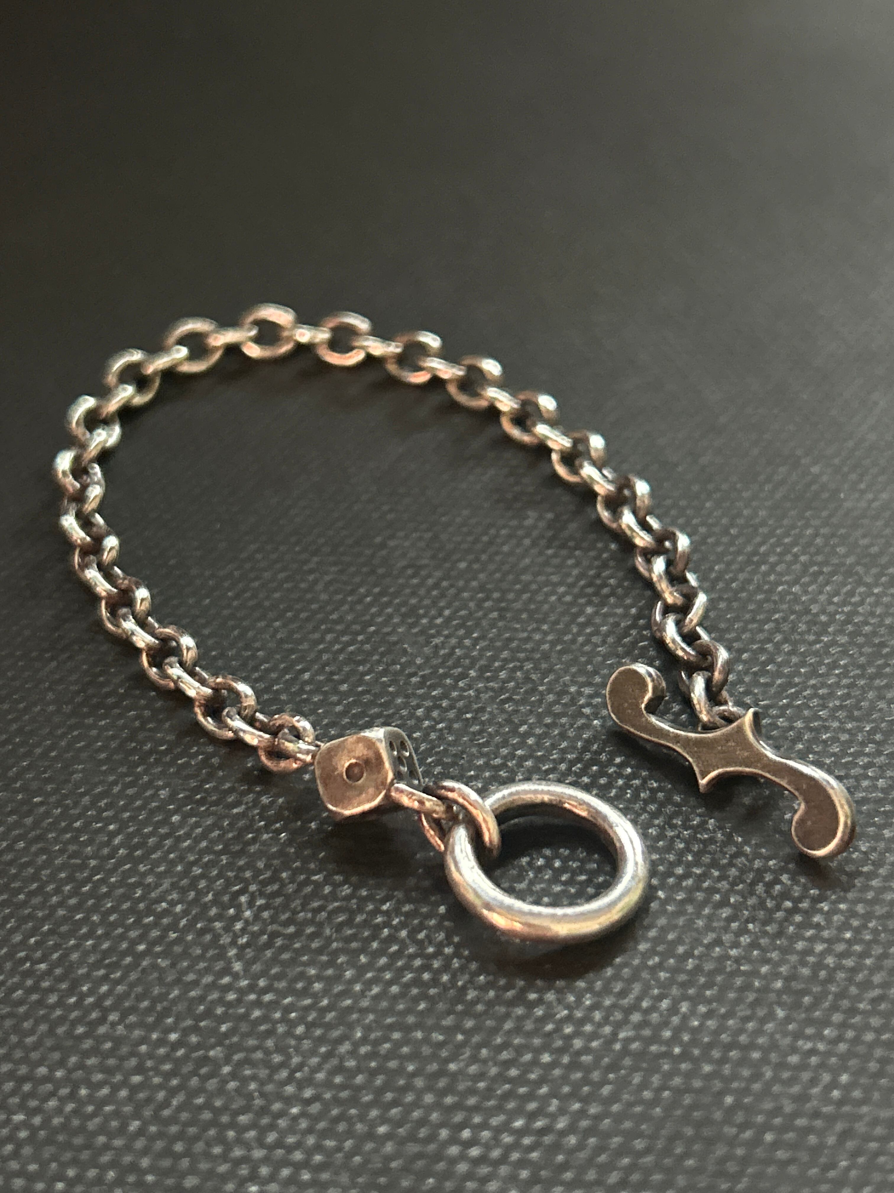 Tバータイプのチェーンです。丸小豆チェーンにFholeデザインの Tバーに、チェーンの逆エンドにDiceをワンポイントでセット。