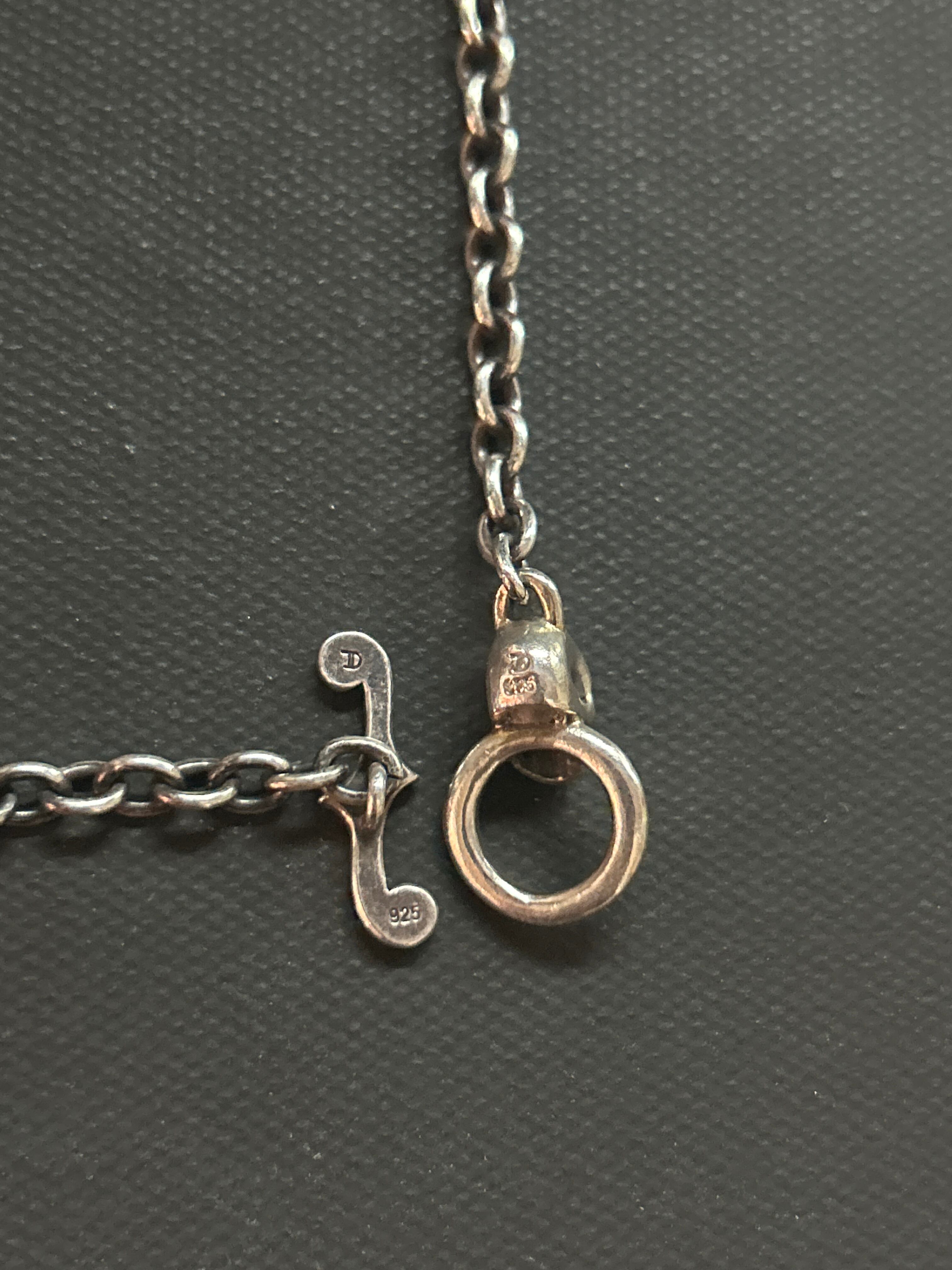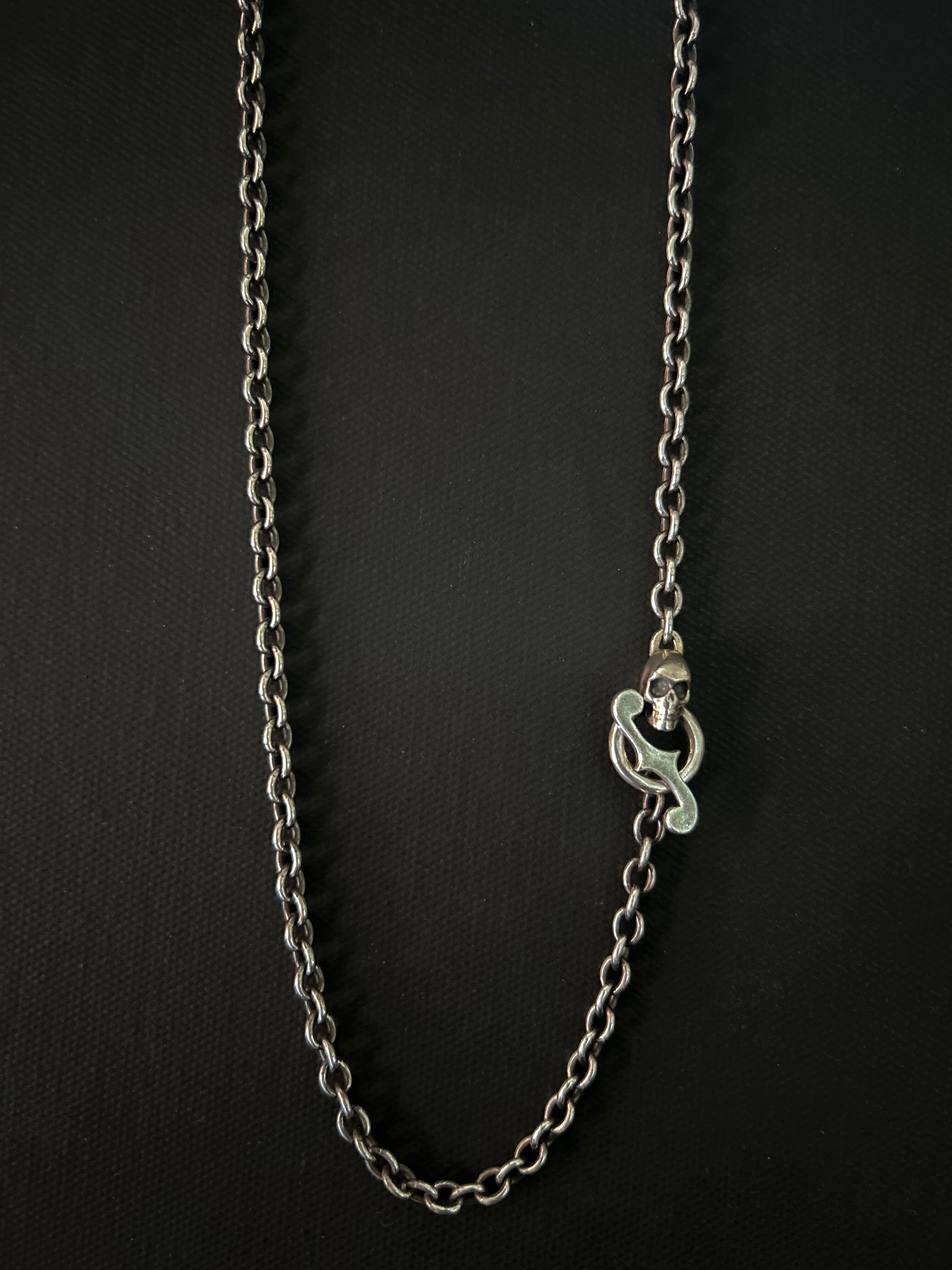 Tバータイプのチェーンです。少し大きめの丸小豆チェーンにFholeデザインの Tバーに、チェーンの逆エンドにskullをワンポイントでセット。