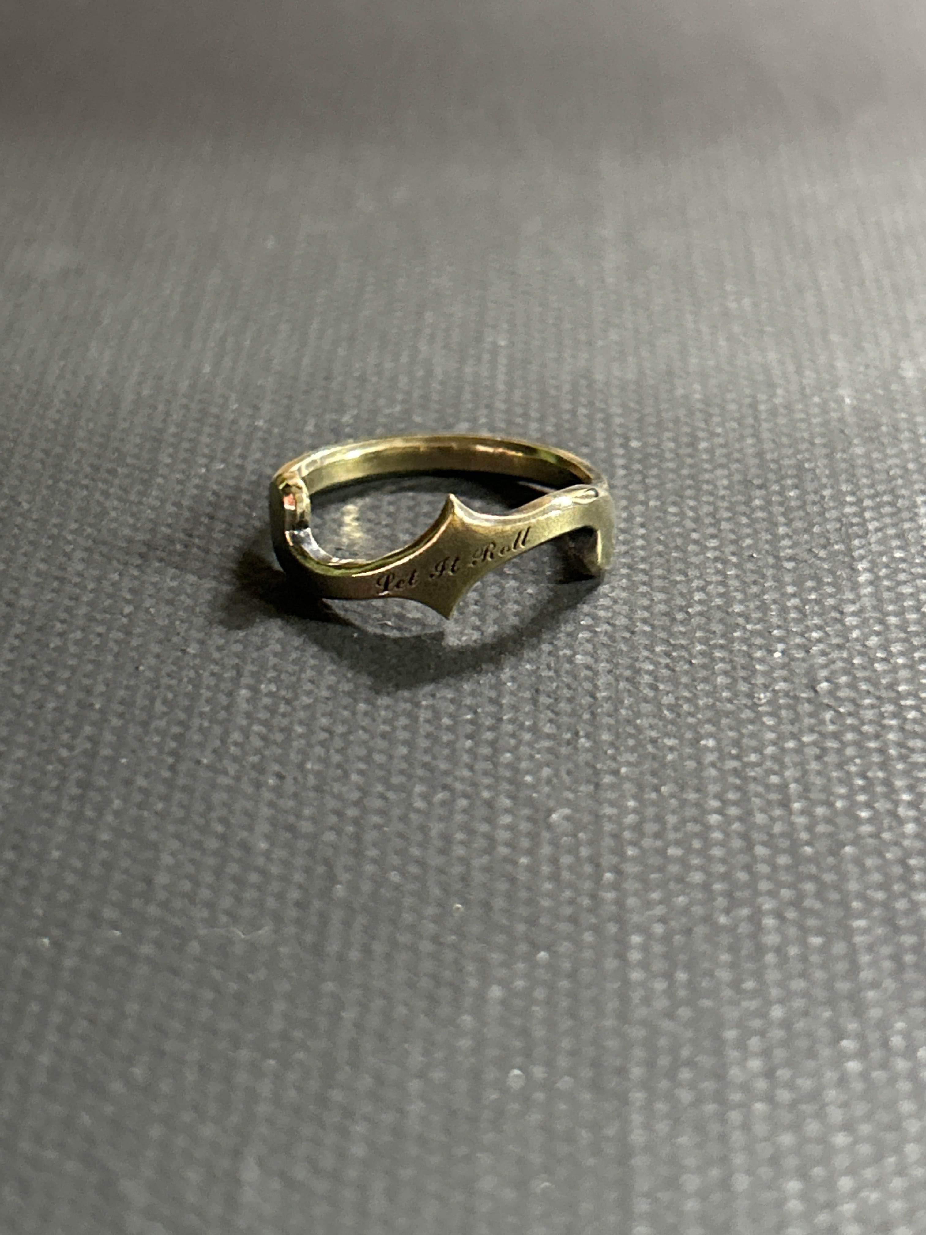 細目でシンプルにビンテージライクな雰囲気に仕上げました。fholeの中央にはlet it rollの刻印。重ね付け、単体付け、自身好みの付け方で。