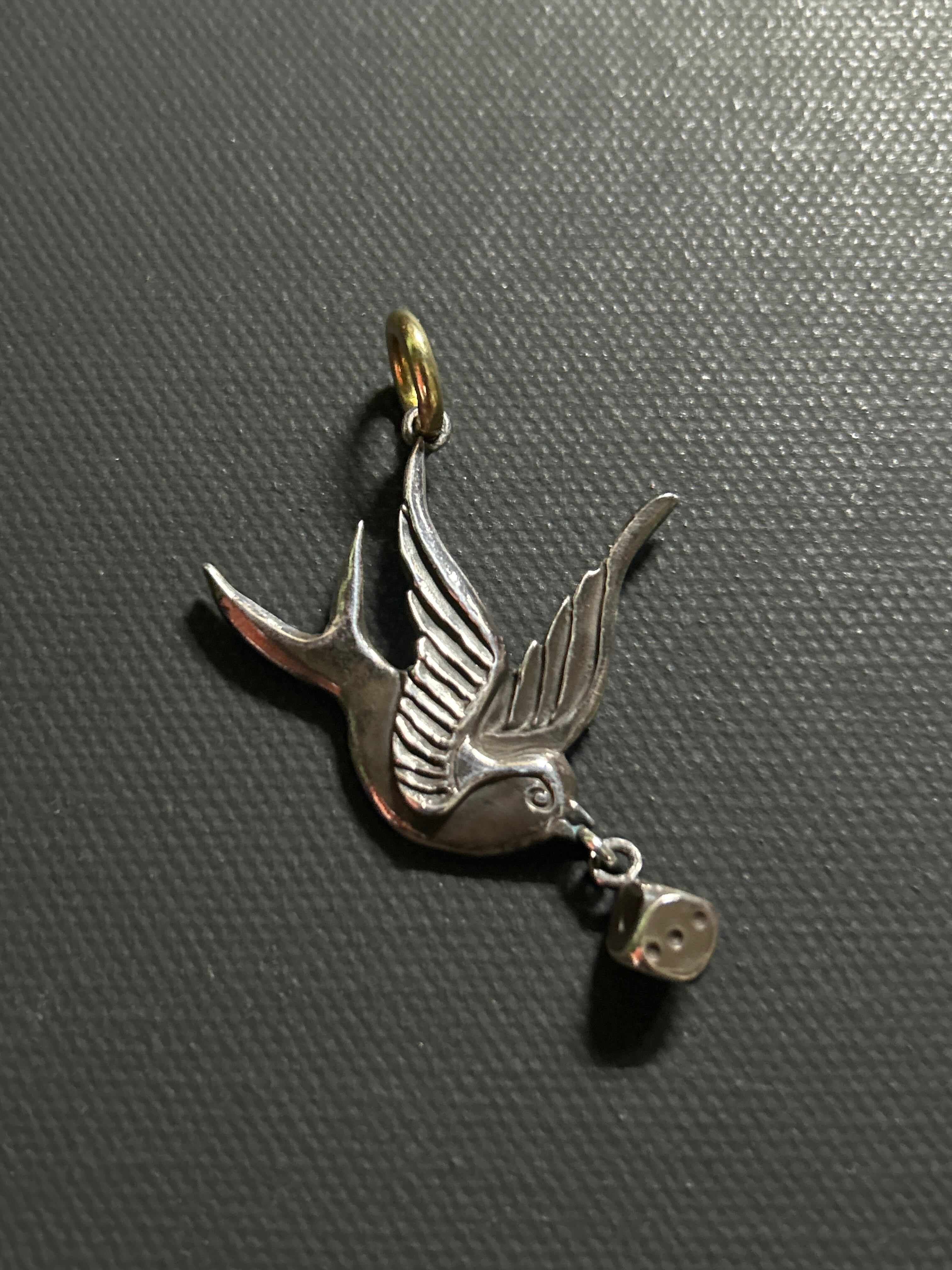 大きめのswallowのペンダントトップ。ワンポイントでdiceを咥えています。存在感と着け心地は抜群だと思います。