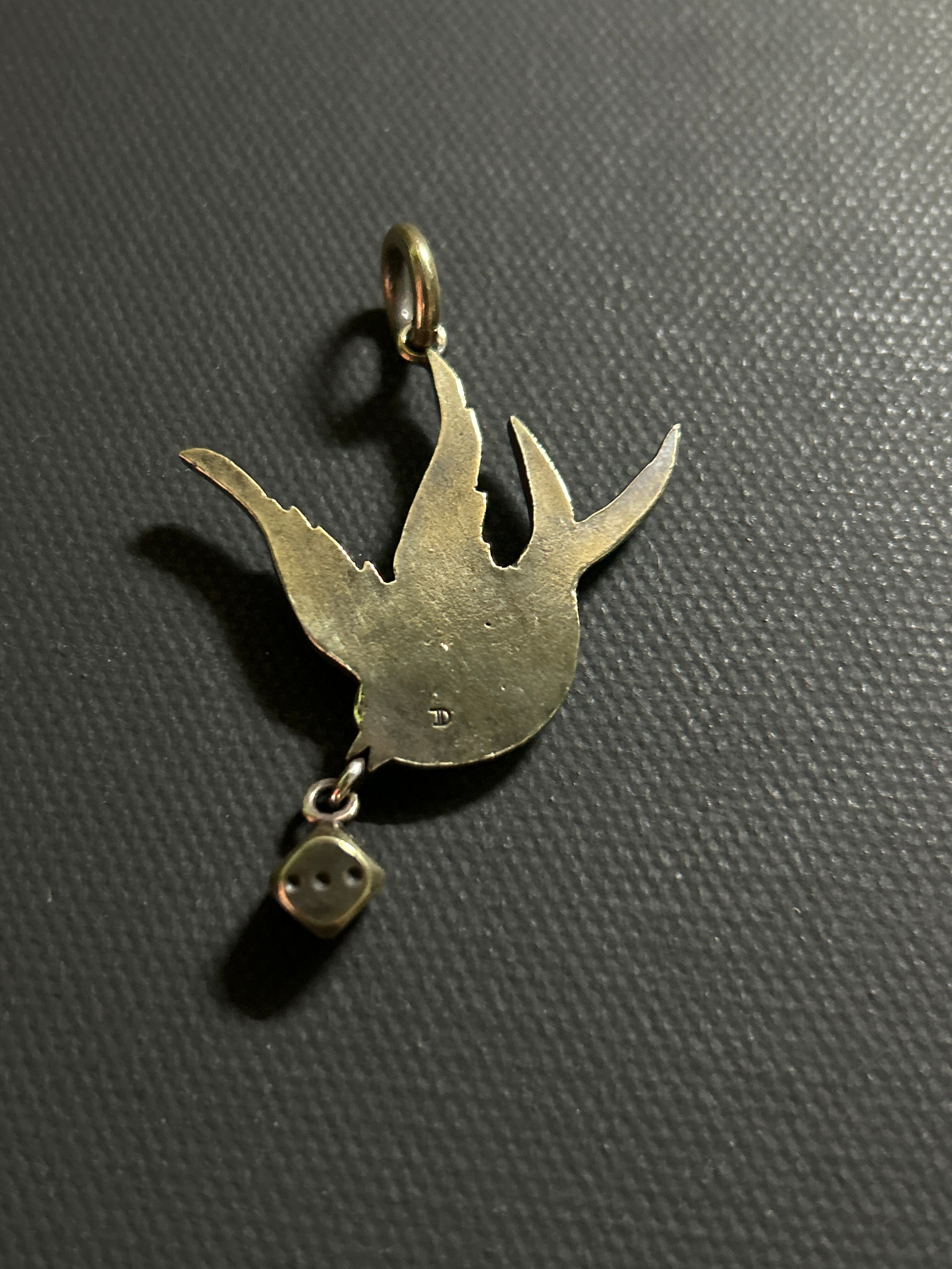 Swallow the dice pendant brass