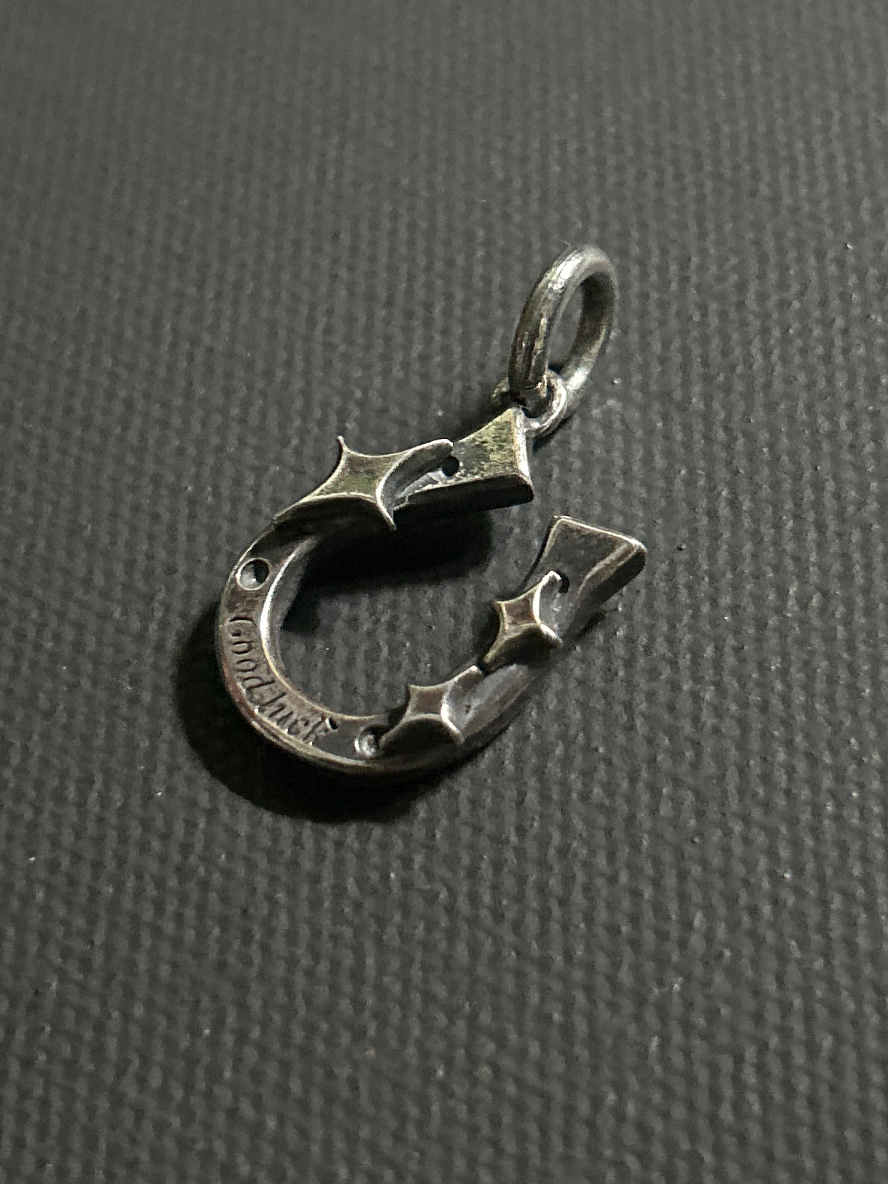 Good luckの刻印を施し、ホースシューにグリッターをセットしたペンダントトップ。馬の蹄鉄モチーフのデザインです。U字型の形状から、幸せを受け止めて溜め込むと言われ、幸運をもたらす縁起物として古くから愛されております。