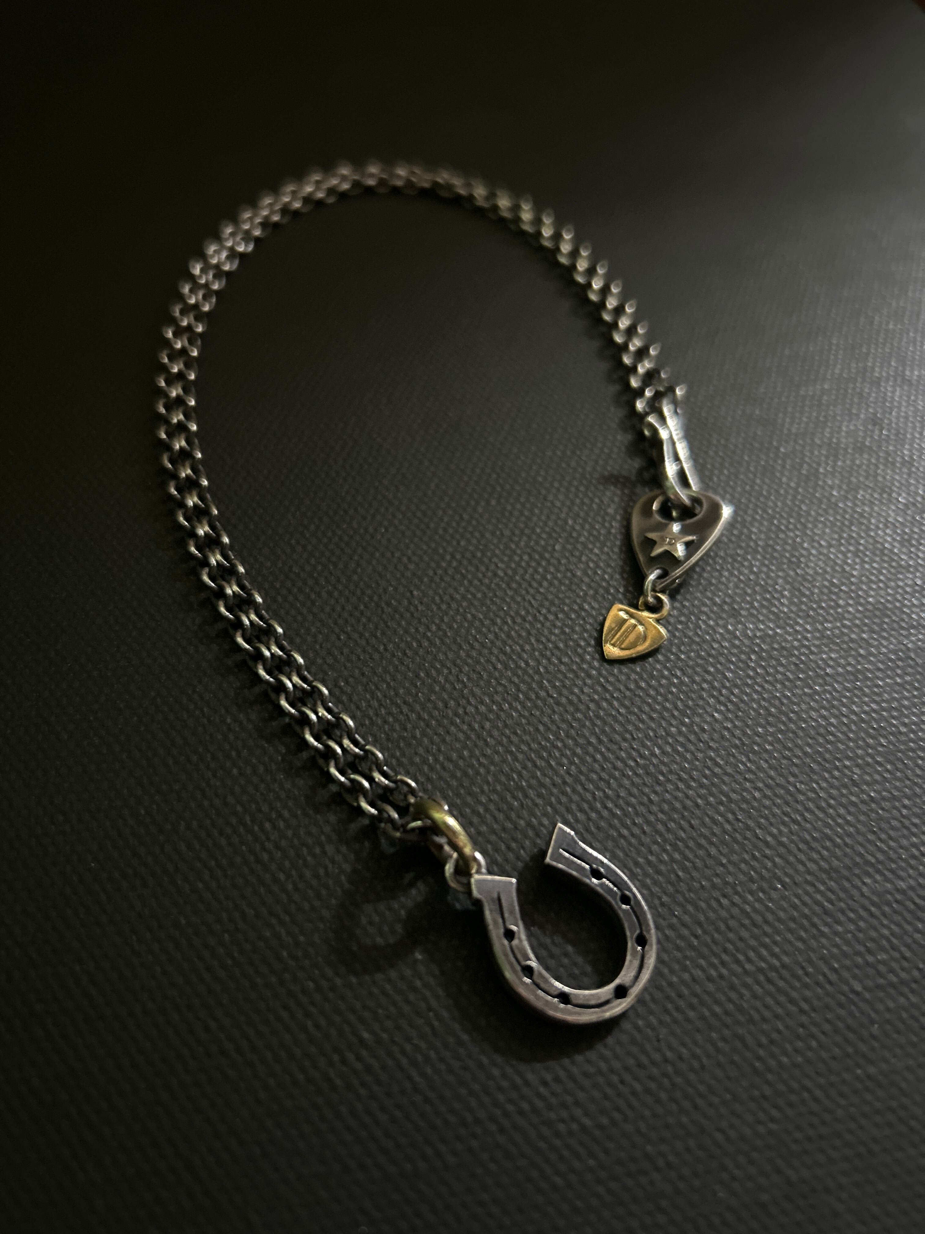 従来のホースシューペンダントをよりシンプルに仕上げたペンダントトップ。馬の蹄鉄モチーフのデザインです。U字型の形状から、幸せを受け止めて溜め込むと言われ、幸運をもたらす縁起物として古くから愛されております。